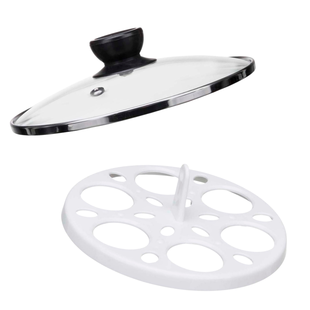 - Material: Heat-resistant plastic base, removable metal cooking accessories
