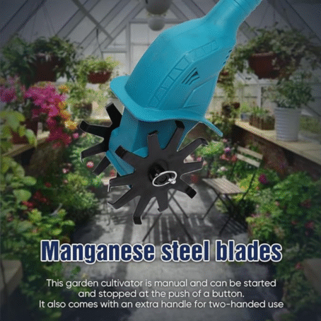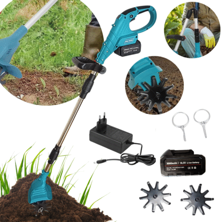 The Foldable Cordless Garden Tiller is a high-performance gardening tool designed to make soil cultivation fast, efficient, and effortless. Powered by a durable lithium battery and a pure copper motor, this scarifier provides long-lasting performance without the need for oil or gas. It is the perfect solution for loosening soil, preparing seedbeds, and maintaining gardens, orchards, and greenhouses.