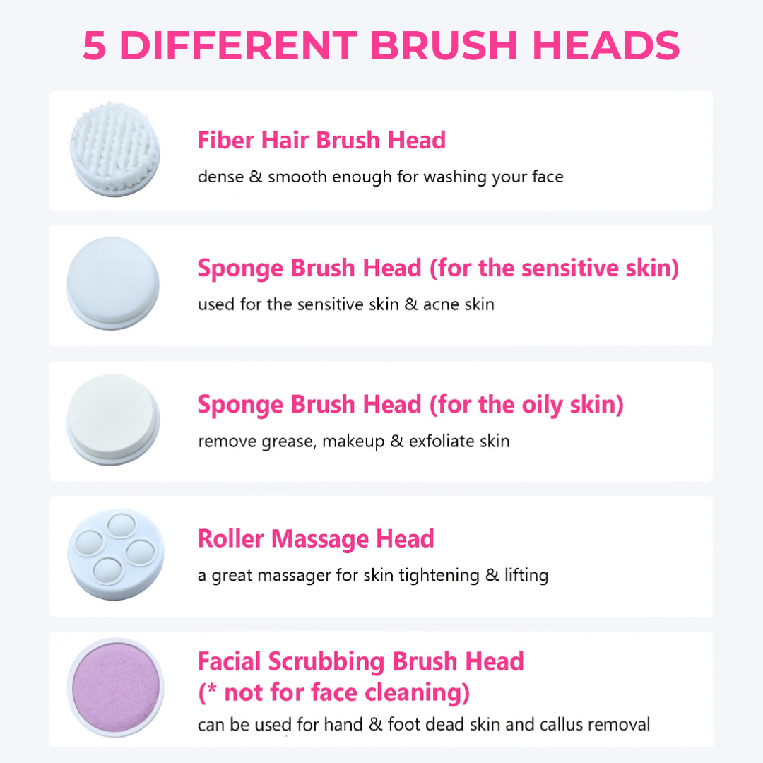 5X Interchangeable Tips (Latex Sponge, Makeup Remover Sponge, Brush, Ball Tip, Abrasive Peeling Tip)