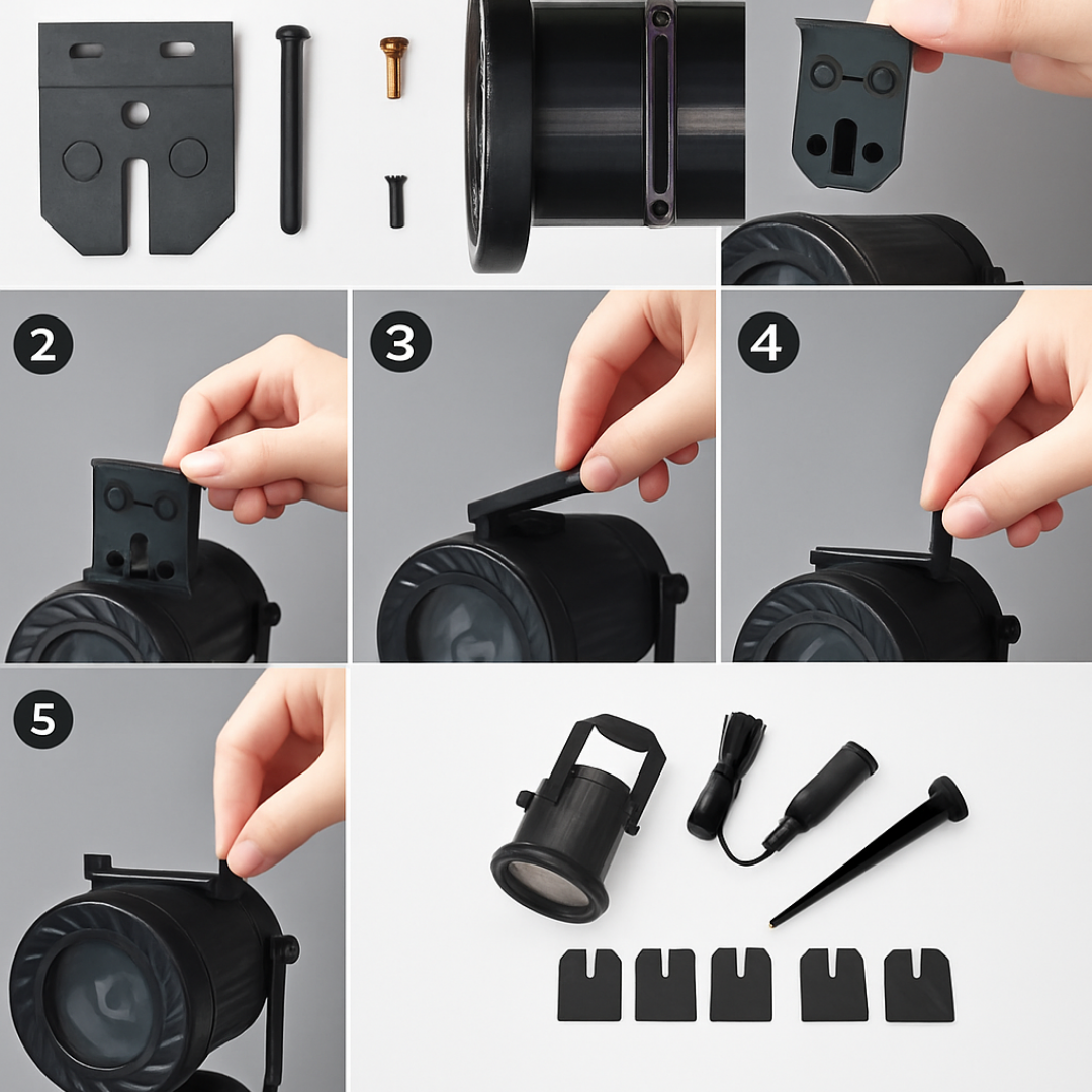 You can easily mount the projector into the ground using the stake or install it on hard surfaces using the mounting base. Perfect for quick setup without ladders, tools, or complex installation.