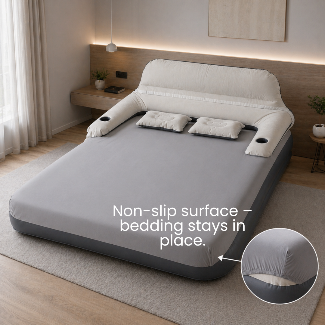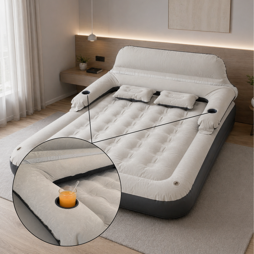 Upgrade your rest with this premium queen-size inflatable airbed featuring a built-in backrest. Designed for both indoor and outdoor use, it offers the perfect combination of comfort, convenience, and strength. Ideal for guests, camping, or lounging, this air mattress ensures a restful and supported experience wherever you are.