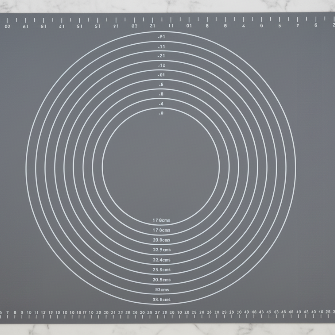 Large, non-stick silicone mat with diameter guides and rulers for precise work