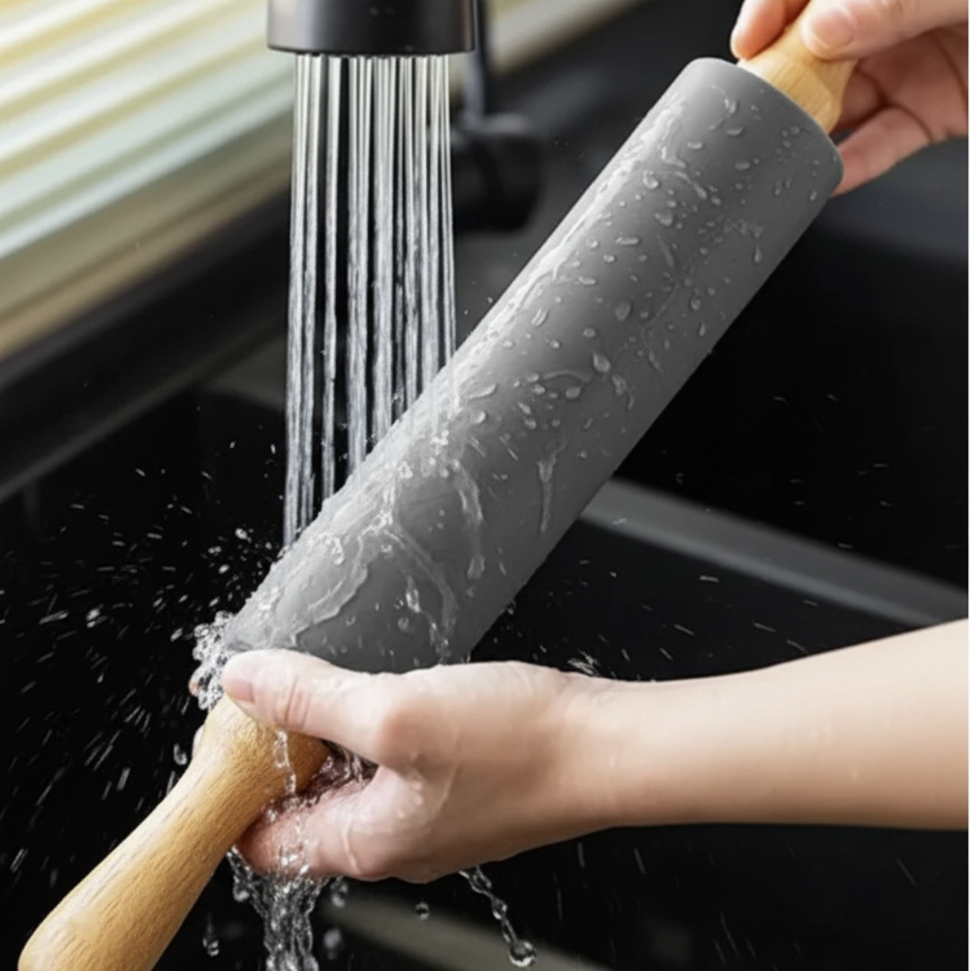 Silicone roller with wooden handles – combines modern design with classic comfort