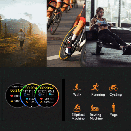 Track walking, running, cycling, and other fitness activities with precision. The smartwatch records time, distance, calories, and performance progress to keep you motivated.